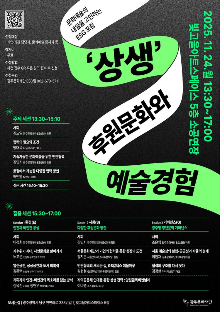 ±¤ÁÖ¹®ÈÀç´Ü ±èÀÓÈ£ ESGÆÀÀåÀº ¡°¹®È¿¹¼úÀÇ Áö¼Ó°¡´É¼ºÀ» À§Çؼ´Â ¹Î°£¡¤°ø°ø¡¤Áö¿ª°øµ¿Ã¼°¡ ÇÔ²² Çù·ÂÇÏ´Â ±¸Á¶°¡ ÇʼöÀû¡±À̶ó¸ç ¡°À̹ø Æ÷·³ÀÌ Áö¿ª ¹®È¿¹¼ú »ýŰ踦 ´õ¿í ưưÇÏ°Ô ¸¸µå´Â °è±â°¡ µÇ±â¸¦ ±â´ëÇÑ´Ù¡±°í ¸»Çß´Ù.