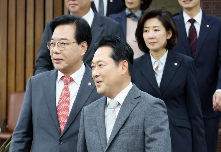 ÃÖ¼öÁø ¿ø³»¼ö¼®´ëº¯ÀÎÀº À̳¯ ¿ÀÀü ±¹È¸¿¡¼ ¿¸° ÀÇ¿øÃÑȸ ÈÄ ±âÀÚµé°ú ¸¸³ª ¡°Ãß Àü ¿ø³»´ëÇ¥¿¡ ´ëÇÑ Ã¼Æ÷µ¿ÀǾȿ¡ ´ëÇØ ÀúÈñ´Â °ÅºÎÇÒ °Í¡±À̶ó¸ç ¡°¹Î»ý ¹ý¾È 50°³ 󸮴 ´õºÒ¾î¹ÎÁÖ´ç°ú ÇùÀÇÇÒ ¿¹Á¤À̰í È®Á¤µÈ °Ô ¾ø´Ù¡±°í Çß´Ù.