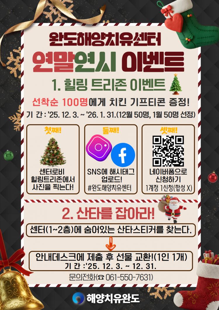 12¿ù 24ÀϺÎÅÍ 27ÀϱîÁö´Â ÇØ¾çÄ¡À¯ ÇÁ·Î±×·¥°ú ¿¬°èÇÑ °¨¼º ÀÖ´Â ¿¬¸» ºÐÀ§±â¸¦ Áñ±æ ¼ö ÀÖµµ·Ï ¡®Å©¸®½º¸¶½º ¿øµ¥ÀÌ Å¬·¡½º¡¯µµ ¿î¿µÇÑ´Ù.
