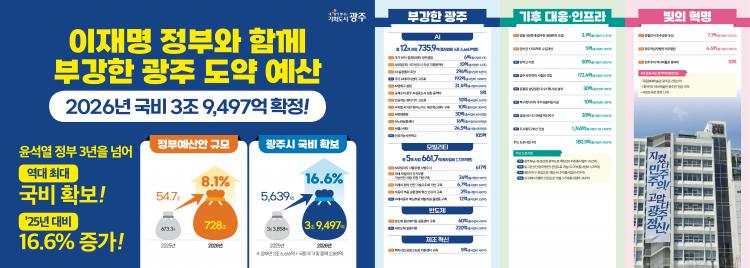 ±¤Áֽà 2026³â Á¤ºÎ ¿¹»ê Áß ³»³âµµ ±¹ºñ¸¦ ¿ª´ë ÃÖ´ë ±Ô¸ðÀÎ 3Á¶9497¾ï¿ø È®º¸Çß´Ù°í 3ÀÏ ¹àÇû´Ù.