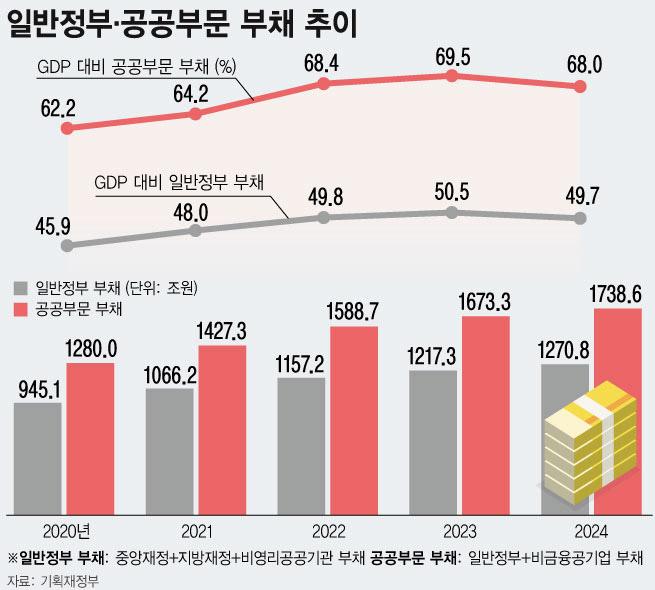 11ÀÏ ±âȹÀçÁ¤ºÎ¿¡ µû¸£¸é 2024³â ¸» ±âÁØ ¡®ÀϹÝÁ¤ºÎ ºÎ䡯(D2)´Â Àü³â ´ëºñ 53Á¶5000¾ï¿ø Áõ°¡ÇÑ 1270Á¶8000¾ï¿ø, ¡®°ø°øºÎ¹® ºÎ䡯(D3)´Â Àü³âº¸´Ù 65Á¶3000¾ï¿ø ´Ã¾î³ 1738Á¶6000¾ï¿øÀ¸·Î Áý°èµÆ´Ù.