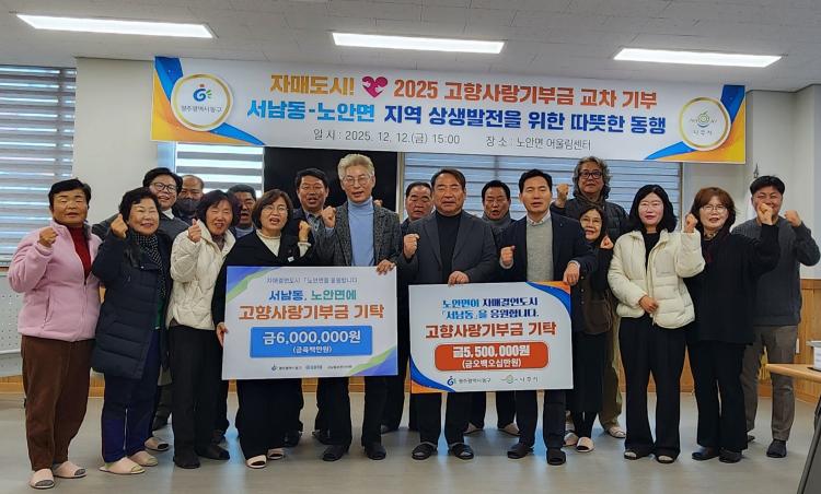 À̳¯ ³ë¾È¸éÀº ¼³²µ¿¿¡ 550¸¸ ¿øÀ», ¼³²µ¿Àº ³ë¾È¸é¿¡ 600¸¸ ¿øÀÇ °íÇâ»ç¶û±âºÎ±ÝÀ» »óÈ£ Àü´ÞÇÏ°í ¾ç Áö¿ª °£ÀÇ ²ÙÁØÇÑ ¿ìÁ¤°ú Çù·Â °ü°è¸¦ ÀçÈ®ÀÎÇß´Ù.