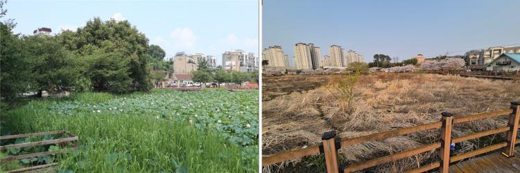 ÇÏÁö¸¸ ÇØ¸¶´Ù Àú¼öÁö ¹Ù´Ú¿¡ Á¡Åä»ç ÅðÀû¹°ÀÌ ½×ÀÌ¸é¼ À°ÁöȰ¡ ÁøÇàµÆ´Ù. Àú¼öÁö ¸éÀûÀÇ Àý¹Ý°¡·®ÀÌ À°Áö·Î º¯Çß°í ±× À§¿¡´Â ÀâÃʰ¡ ¹ø½ÄÇß´Ù.