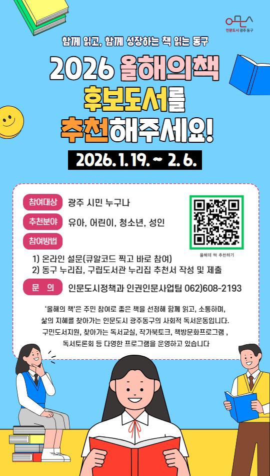 ÇÑÆí µ¿±¸´Â ¡®¿ÃÇØÀÇ Ã¥¡¯ ¼±Á¤À» ½ÃÀÛÀ¸·Î ¿À´Â 10¿ù °³ÃÖ ¿¹Á¤ÀÎ ¡®¿ÃÇØÀÇ Ã¥ µ¶¼Åä·Ð¸¶´ç¡¯±îÁö ½Ã¹Î Âü¿©°¡ °è¼ÓµÉ ¼ö ÀÖµµ·Ï ¿¬Áß µ¶¼¿Í Åä·ÐÀÇ È帧À» È®»êÇØ ³ª°¥ °èȹÀÌ´Ù. ±âŸ ÀÚ¼¼ÇÑ »çÇ×Àº Àι®µµ½ÃÁ¤Ã¥°ú ÀαÇÀι®»ç¾÷ÆÀÀ¸·Î ÀüÈ((062-608-2193) ¹®ÀÇÇÏ¸é µÈ´Ù.