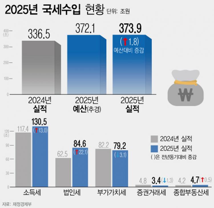 ¸¶°¨ °á°ú¿¡ µû¸£¸é, Áö³ÇØ ±¹¼¼¼öÀÔÀº 373Á¶9000¾ï¿øÀ¸·Î Àü³â(336Á¶5000¾ï¿ø) ´ëºñ 37Á¶4000¾ï¿ø Áõ°¡Çß´Ù. ÀÌ´Â Ãß°æ ±âÁØ ±¹¼¼¼öÀÔ ¿¹»ê(372Á¶1000¾ï¿ø)º¸´Ù 1Á¶8000¾ï¿ø ´õ °ÈÈù ¼öÁØÀÌ´Ù.