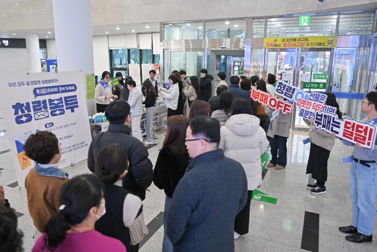 ¼±¸´Â 10ÀÏ ¼±¸Ã» 1Ãþ ·Îºñ¿¡¼ ±Ýǰ¡¤¼±¹° ¼ö¼ö °üÇàÀ» ±ÙÀýÇϰí, °øÁ÷ÀÚÀÇ Ã»·Å ½ÇõÀ» »ýȰ ¼Ó ¹®È·Î Á¤Âø½Ã۱â À§ÇÑ ¡®¾È ÁÖ°í,¾È ¹Þ±â û·ÅºÀÅõ Ä·ÆäÀΡ¯À» ½Ç½ÃÇß´Ù.