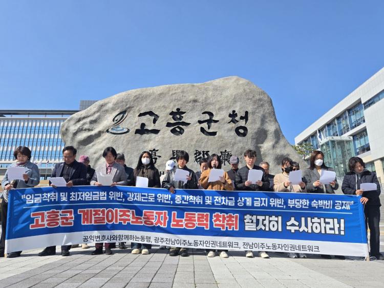 °øÀͺ¯È£»ç¿ÍÇÔ²²Çϴµ¿Çà°ú ±¤ÁÖÀü³²ÀÌÁֳ뵿ÀÚÀÎ±Ç³×Æ®¿öÅ© µî 30¿© °³ ´Üü´Â 4ÀÏ ¿ÀÀü Àü³² °íÈﱺû ¾Õ¿¡¼ ±âÀÚȸ°ßÀ» ¿°í ¡°¹Î³¸ÀÌ µé¾î³ °èÀý³ëµ¿ÀÚ¿¡ ´ëÇÑ ³ëµ¿·Â ÂøÃ븦 öÀúÈ÷ ¼ö»çÇÏ¶ó¡±°í ¹àÇû´Ù.