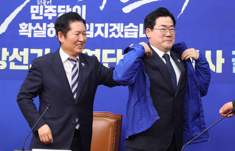 À̳¯ ¹ßÇ¥¿¡´Â Á¤Ã»·¡ ´ëÇ¥µµ Á÷Á¢ Âü¼®Çß´Ù. Á¤ ´ëÇ¥´Â ¹Ú ÀÇ¿ø¿¡°Ô ¹ÎÁÖ´çÀ» »ó¡Çϴ Ǫ¸¥ Á¡ÆÛ¸¦ Á÷Á¢ µÑ·¯ÁÖ¸ç Ä£¹Ð°¨À» °ú½ÃÇß´Ù. µÎ »ç¶÷Àº Áö³ÇØ Àü´ç´ëȸ¿¡¼ ´ç±ÇÀ» µÎ°í °æÀïÇß´Ù.