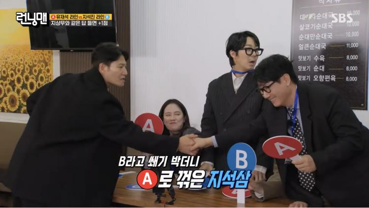 Áö¼®ÁøÀÌ ¡°¡¯·±´×¸Ç¡¯¿¡ À¯Àç¼®ÀÌ ¾øÀ¸¸é ¾È Çϳġ±°í ¹¯ÀÚ ±èÁ¾±¹Àº ¡°¾È ÇßÀ» °Í¡±À̶ó°í ´äÇß´Ù. ±×·¯´ø Áß Áö¼®ÁøÀÌ ¡®À¯Àç¼® ¶óÀΡ¯À» ¼±ÅÃÇØ ¿ôÀ½À» ÀھƳ´Ù. ÇÏÇÏ´Â ¡°¿å¸Áµ¢¾î¸® ÇҾƹöÁö¡±¶ó°í ¸»Çß´Ù.