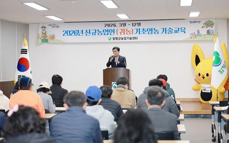 ÇÔÆò±ºÀº ¡°Áö³ 11ÀÏ ³ó¾÷±â¼ú¼¾ÅÍ¿¡¼ ½Å±Ô³ó¾÷ÀÎÀÇ ¾ÈÁ¤ÀûÀÎ ³óÃÌ Á¤Âø°ú ¿µ³ó ¿ª·® °È¸¦ À§ÇÑ ¡®2026³â ½Å±Ô³ó¾÷ÀÎ ±âÃÊ¿µ³ó ±â¼ú±³À°¡¯ °³°½ÄÀ» ¿°í ±³À°ÀÇ ½ÃÀÛÀ» ¾Ë·È´Ù¡±°í 12ÀÏ ¹àÇû´Ù.