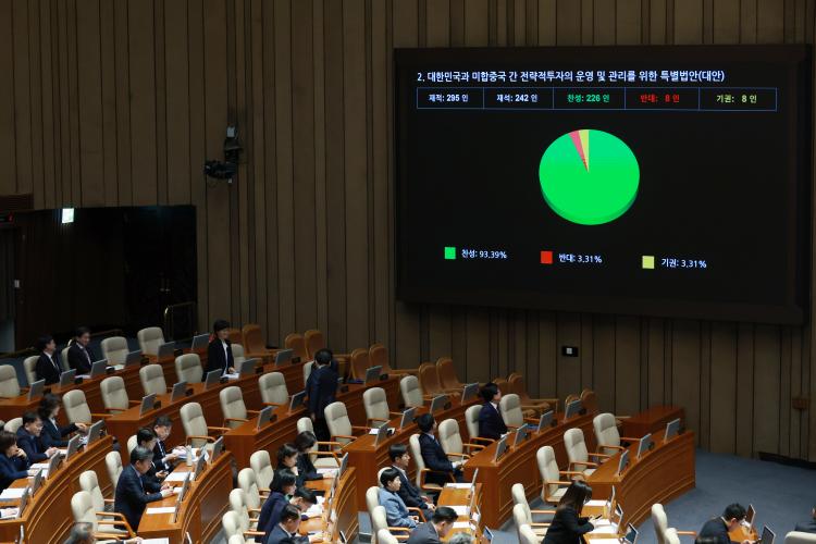 Á¤ºÎ´Â 12ÀÏ ±¹È¸ º»È¸ÀÇ¿¡¼ ¡®´ëÇѹα¹°ú ¹ÌÇÕÁß±¹ °£ Àü·«ÀûÅõÀÚÀÇ ¿î¿µ ¹× °ü¸®¸¦ À§ÇÑ Æ¯º°¹ý(´ë¹ÌÅõÀÚÆ¯º°¹ý)¡¯ÀÌ ÀÇ°áµÆ´Ù°í ¹àÇû´Ù.