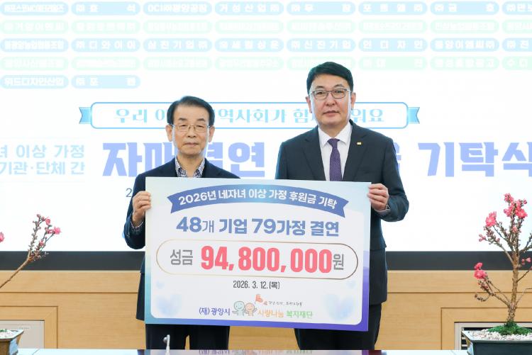 ±¤¾ç½Ã °ü°èÀÚ´Â ¡°À̹ø ±âʽÄÀº Áö¿ª»çȸ°¡ ´ÙÀÚ³à °¡Á¤À» ÇÔ²² ÀÀ¿øÇÏ´Â ¶æ±íÀº ÀÚ¸®¡±¶ó¸ç ¡°ÈÄ¿ø¿¡ Âü¿©ÇØÁֽбâ¾÷¡¤´Üü¿¡ °¨»çµå¸®¸ç, ¾ÕÀ¸·Îµµ ±¤¾ç½Ã°¡ ¾ÕÀå¼¼ º¸À° Ä£ÈÀû ȯ°æ Á¶¼º¿¡ Èû¾²°Ú´Ù¡±°í ¸»Çß´Ù.