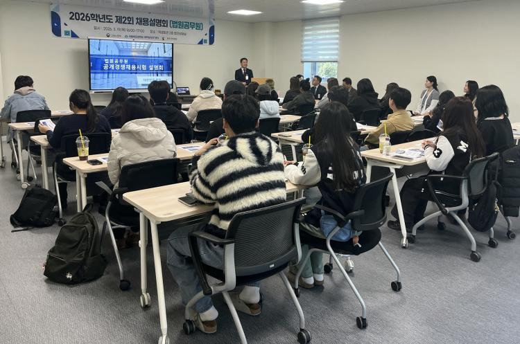 À̹ø ¼³¸íȸ´Â Á¤º¸ Á¢±ÙÀÌ ¾î·Á¿î Áö¿ª ´ëÇлýµé¿¡°Ô »ç¹ýºÎÀÇ ¿ªÇÒ°ú ¹ý¿ø°ø¹«¿øÀÇ Á÷¹«¸¦ Á¤È®È÷ ¾Ë¸®°í, ä¿ë ½ÃÇè¿¡ ´ëÇÑ ±¸Ã¼ÀûÀÎ Ãë¾÷ Á¤º¸¸¦ Á¦°øÇϱâ À§ÇØ ¸¶·ÃµÆ´Ù.