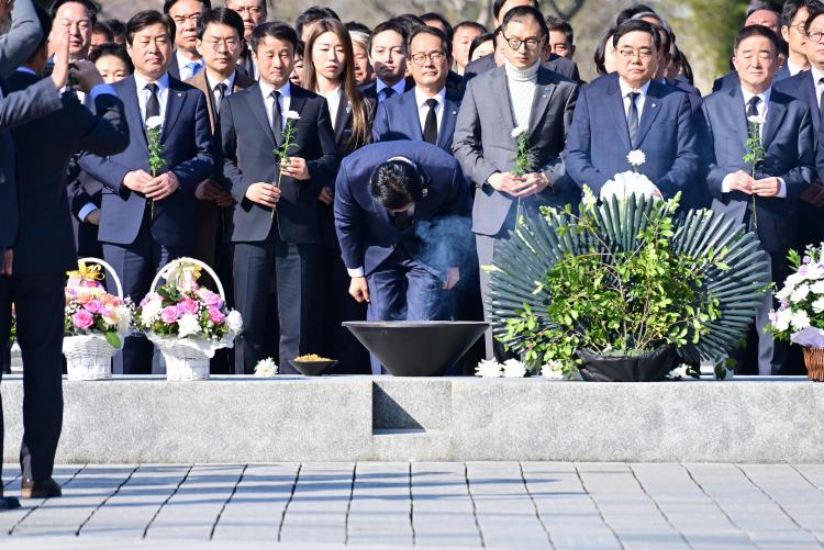 Á¤ ´ëÇ¥´Â À̳¯ Á¶¹®·Ï¿¡ ¡°³ë¯´Ô, ²ÉÀÌ Áö°í ³ª¼¾ß º½ÀÎ ÁÙ ¾Ë¾Ò½À´Ï´Ù. ¾î´À»õ ´õ ¸¹Àº ³ë¹«ÇöÀÌ ÇǾ½À´Ï´Ù¡±¶ó´Â ±ÛÀ» ³²°å´Ù. ¹¦¿ªÀ» Âü¹èÇÏ¸ç ´«¹°À» È긮±âµµ Çß´Ù.