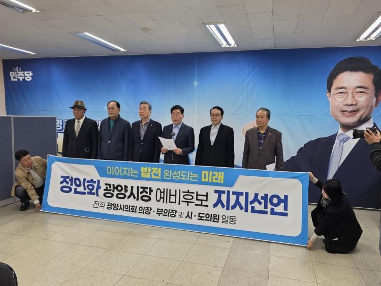 ÀüÁ÷ ÀÇÀå´ÜÀ» Æ÷ÇÔÇÑ 11ÀÎÀÇ ÀüÁ÷ ½ÃµµÀÇ¿øµéÀº ÁöÁö ¼±¾ð¹®À» ÅëÇØ ¡°±¤¾çÀº Áö±Ý Àü³²¡¤±¤ÁÖ ÅëÇÕÆ¯º°½Ã¶ó´Â °Å´ëÇÑ º¯È¿Í ¹Ì·¡»ê¾÷ ´ëÀüȯÀ̶ó´Â ½Ã´ëÀû °úÁ¦ ¾Õ¿¡ ¼ ÀÖ´Ù¡±¸ç ¡°ÀÌ ÁßÂ÷´ëÇÑ ½Ã±â¿¡ ½ÃÇàÂø¿À¸¦ °ÞÀ» ¿©À¯°¡ ¾ø±â¿¡ °ËÁõµÈ ¸®´õ½ÊÀÌ Àý½ÇÇÏ´Ù¡±°í ÁöÁö ¹è°æÀ» ¹àÇû´Ù.