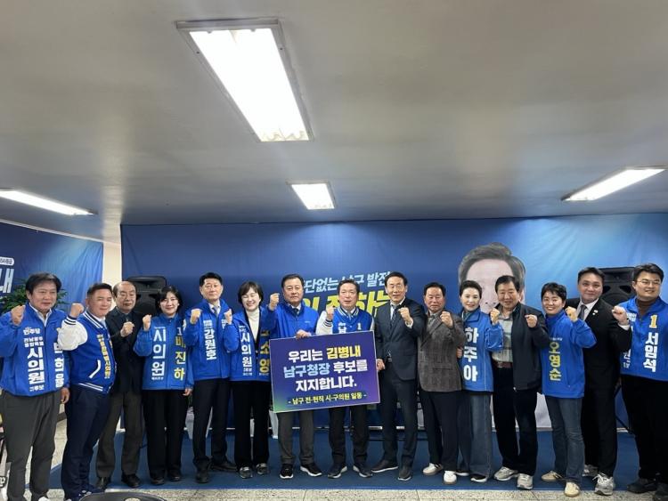 ³²±¸ Ãâ½Å ÀüÇöÁ÷ ½Ã¡¤±¸ÀÇ¿øµéÀº¡°±¤ÁÖ¡¤Àü³² ´ëÅëÇÕ ½Ã´ë¸¦ ¸Â¾Æ ³²±¸°¡ Áß½ÉÁö·Î µµ¾àÇÏ´À³Ä, ¼ºÀåÀÌ ¸ØÃß´À³ÄÀÇ Áß´ëÇÑ ±â·Î¿¡ ¼ ÀÖ´Ù¡±¸ç ¡°ÇöÀåÀÇ »ý»ýÇÑ ¸ñ¼Ò¸®¸¦ ¾Æ´Â ¿ì¸® ÀÇ¿øµéÀº ³²±¸ÀÇ ¹Ì·¡¸¦ Ã¥ÀÓÁú ÀûÀÓÀÚ·Î ±èº´³» È常¦ °·ÂÈ÷ ÁöÁöÇÑ´Ù¡±¸ç ±èº´³» ¿¹ºñÈĺ¸ ÁöÁö¸¦ ¼±¾ðÇß´Ù.