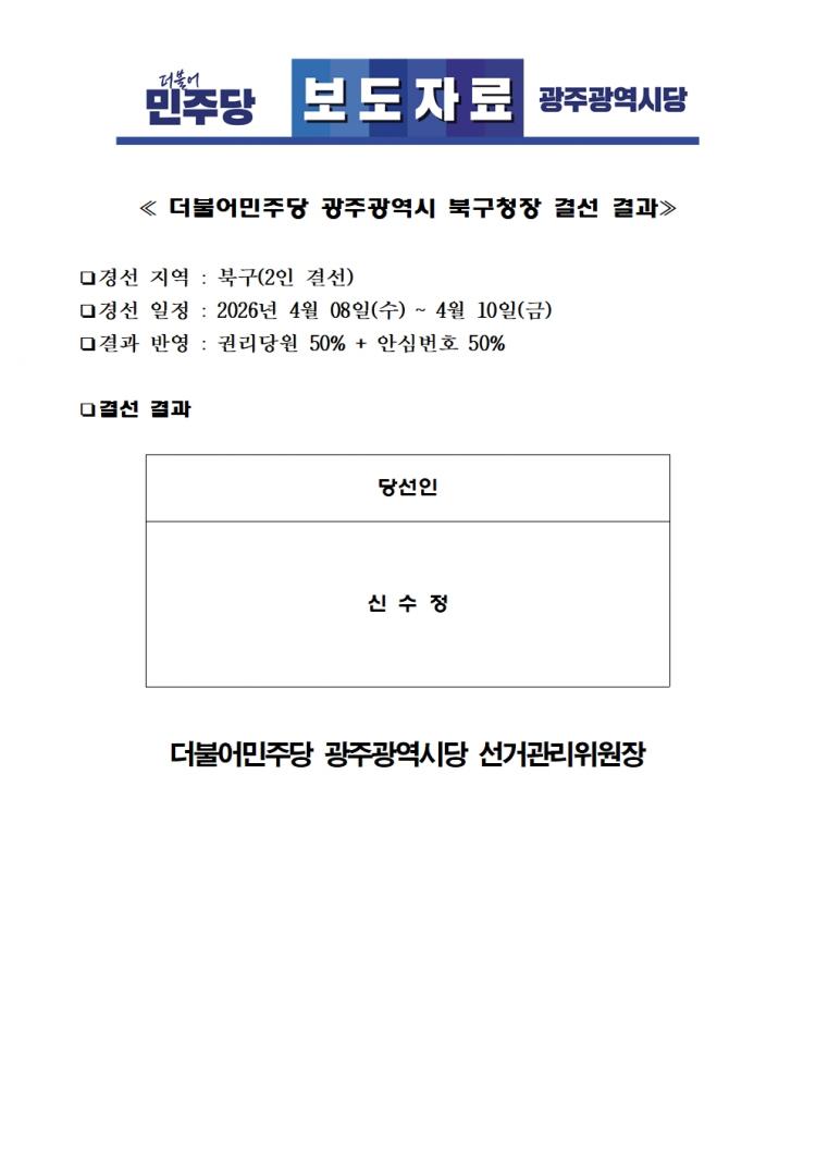 [¼Óº¸]´õºÒ¾î ¹ÎÁÖ´ç ±¤ÁÖ±¤¿ª½Ã ºÏ±¸Ã»Àå °á¼± °á°ú ¹ßÇ¥