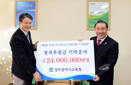 À̳¯ Àü´Þ½Ä¿¡¼´Â ±ú²ýÇÏ°í ¿Ã¹Ù¸¥ Á¤Ä¡¸¦ ¿°¿øÇÏ´Â ±³À°Ã» ¼Ò¼Ó °ø¹«¿ø 251¸íÀÌ 24,000,000¿øÀ» ¸ð¾Æ Àü´ÞµÇ¾ú´Ù.