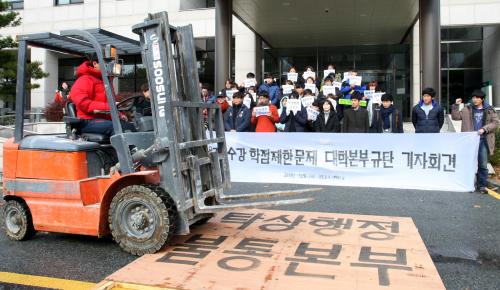 ÇлýµéÀº ¡°Áö³ 9¿ù ¡®ÇÐÁ¡ Àç¼ö° Á¦ÇÑ Á¦µµ ½ÃÇàÀ» 1³â°£ À¯º¸Çϰí ÇлýµéÀÇ ÀǰßÀ» ´õ ¼ö·ÅÇÑ µÚ °áÁ¤ÇÏÀÚ¡¯´Â ÇлýµéÀÇ Á¦¾ÈÀ» ´ëÇк»ºÎ°¡ ¹Þ¾ÆµéÀÌÁö ¾Ê¾Ò´Ù¡±¸ç ¡°¿ÀÈ÷·Á ´ëÇк»ºÎ´Â ¡®ÀÌ·± ºÎºÐ±îÁö ¿Ö ÇлýµéÀÇ ÀǰßÀ» ¼ö·ÅÇØ¾ß Çϳª¡¯¶ó¸ç µ¶´Ü ÇàÁ¤ÀÇ ÀýÁ¤À» º¸¿©ÁÖ°í ÀÖ´Ù¡±°í ºñÆÇÇß´Ù.
