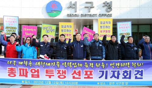 ³ëµ¿ÀÚµéÀº ¶Ç ¡°¿ì¸®´Â ´õ ÀÌ»ó ¼±¸ ÁÖ¹ÎÀÇ °ø°ø ÇàÁ¤ÀÌ À§Å¹¾÷üÀÇ ÀÌÀ± ³îÀ½À¸·Î Àü¶ôÇÏ´Â ¸ð½ÀÀ» Á½ÃÇÒ ¼ö ¾ø´Ù¡±¸ç ¡°Àü¸éÀûÀÎ ÆÄ¾÷ÅõÀïÀº °ø°øÀÇ ÇàÁ¤À» ¼±¸ Áֹε鿡°Ô µÇã¾ÆÁÖ±â À§ÇÑ ÅõÀÀ̶ó°í °Á¶Çß´Ù.
