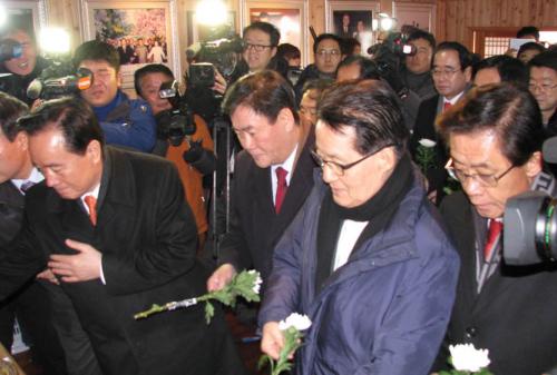 À̺´¼® ±¹È¸ºÎÀÇÀå°ú ÃÖ°æÈ¯ »õ´©¸®´ç ¿ø³»´ëÇ¥, ¹ÚÁö¿ø ¹ÎÁÖ´ç Àü ¿ø³»´ëÇ¥°¡ 15ÀÏ Àü³² ½Å¾È±º ÇÏÀǵµ ±è´ëÁß ´ëÅë·É Ã߸ð°üÀ» ¹æ¹®ÇØ ÇåÈÇϰí ÀÖ´Ù.