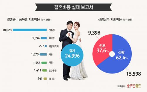½ÅÈ¥ ºÎºÎ°¡ °áÈ¥¿¡ »ç¿ëÇÑ ºñ¿ëÀº Æò±Õ 2¾ï5000¿©¸¸¿øÀ¸·Î Á¶»çµÆ´Ù.