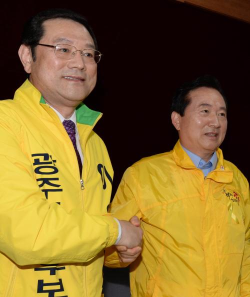° Èĺ¸¿Í ÀÌ È帴 À̳¯ ¿ÀÀü ±¤ÁÖ½ÃÀÇȸ¿¡¼ °øµ¿±âÀÚȸ°ßÀ» °®°í "¾îÁ¬¹ã µÎ »ç¶÷Àº »õÁ¤Ä¡¹ÎÁÖ¿¬ÇÕ ¾Èö¼ö, ±èÇÑ±æ µÎ »ç¶÷ÀÇ ¹Ð½Ç¾ßÇÕÀ¸·Î °øÃµµÈ ³«ÇÏ»ê Èĺ¸ÀÚ¸¦ ¹Ýµå½Ã ¶³¾î¶ß·Á ±¤ÁÖÀÇ Á¤Ã¼¼º°ú ±¤ÁֽùÎÀÇ ÀÚÁ¸½ÉÀ» µÇã°í Çѱ¹ Á¤Ä¡ÀÇ »õ·Î¿î ÁöÆòÀ» ¿¾î¾ß ÇѴٴµ¥ ÀüÀûÀ¸·Î µ¿ÀÇÇϸç À̸¦ À§ÇÑ ¼ö´ÜÀ¸·Î¼ `ÀÌ±æ ¼ö ÀÖ´Â ´ÜÀÏÈ'¸¦ ÃßÁøÅ°·Î Çß´Ù"°í ¹àÇû´Ù.