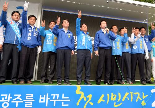 »õÁ¤Ä¡¹ÎÁÖ¿¬ÇÕ ÅÔ¹çÀÎ ±¤ÁÖ´Â Àü·«°øÃµ ÈÄÆøÇ³À¸·Î ÀÎÇØ ±¤ÁÖ½ÃÀå ¼±°ÅÀüÀÌ »ç»ó ÃÊÀ¯ÀÇ Á¢Àü¾ç»óÀ» º¸À̰í ÀÖ´Â ¹Ý¸é, ´ëºÎºÐÀÇ ¼±°Å±¸´Â »õÁ¤Ä¡¿¬ÇÕÀÇ ¾Ð½ÂÀÌ ¿¹»óµÇ°í ÀÖ´Ù.