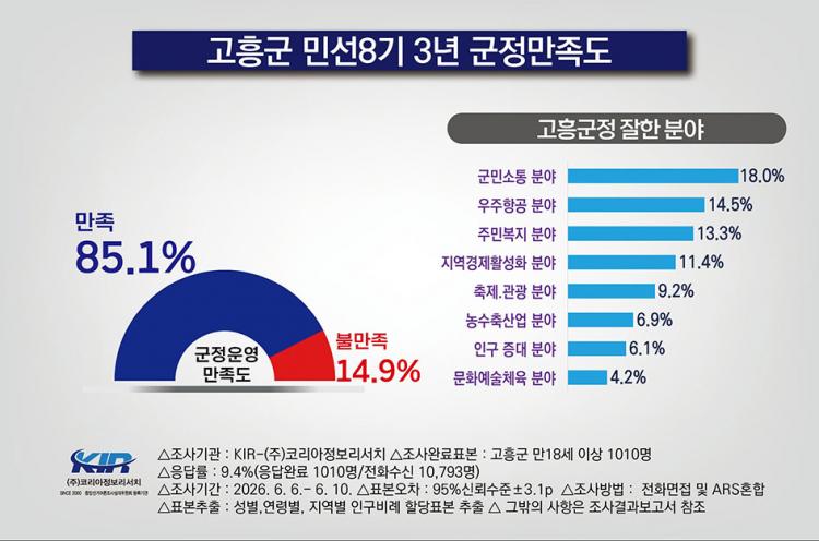 ±ºÁ¤¿¡ ´ëÇÑ ±àÁ¤Àû Æò°¡°¡ ³ôÀº ÀÌÀ¯´Â ¿ìÁÖ, µå·Ð¡¤UAM, ½º¸¶Æ®ÆÊ µî °íÈﱺ 3´ë ¹Ì·¡Àü·«»ê¾÷°ú ±¤ÁÖ~°íÈï °í¼Óµµ·Î¿Í ¿ìÁÖ¼± öµµ, °íÈï~ºÀ·¡ ±¹µµ 15È£¼± È®¡¤Æ÷Àå µî 3´ë ±³ÅëÀÎÇÁ¶ó ±¸ÃàÀ» Â÷Áú¾øÀÌ ÃßÁøÇÑ Á¡°ú 2³â ¿¬¼Ó ³ó¼ö»ê¹° ¼öÃâ 1¾ï ´Þ·¯ ´Þ¼º, ±Ç¿ªº° ÁÖ°Å´ÜÁö Á¶¼º µî Á¤ÁÖ±â¹Ý È®Ãæ, »ç°¢Áö´ë ¾ø´Â ÃÎÃÎÇÑ º¹Áöü°è ±¸Ãà, Àü ±º¹Î ¹Î»ýȸº¹Áö¿ø±Ý Áö¿ø µî ±º¹Î »îÀÇ Áú Çâ»óÀ» À§ÇÑ ³ë·ÂÀÌ ÁÁÀº Æò°¡¸¦ ¹ÞÀº °ÍÀ¸·Î º¸ÀδÙ.