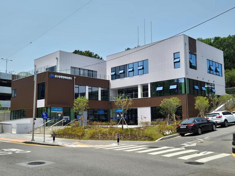 ½Ã¿¡ µû¸£¸é ±âÁ¸ ¹®¼öµ¿ Áֹμ¾ÅÍ(¹®¼öµ¿ 161-5¹øÁö)´Â °ø°£ÀÌ Çù¼ÒÇÏ°í ³ëÈĵŠ¹Î¿øÀÎÀÇ ÀÌ¿ë ºÒÆí°ú ¾÷¹« È¿À²¼º ¹®Á¦°¡ Áö¼ÓµÅ ¿Ô´Ù. ÀÌ¿¡ ½Ã´Â ¹®¼öµ¿ 169-2¹øÁö ºÎÁö·Î ÀÌÀüÀ» °áÁ¤Çϰí ÃÑ»ç¾÷ºñ 55¾ï ¿øÀ» ÅõÀÔÇØ ¿¬¸éÀû 1,483§³, ÁöÇÏ 1Ãþ Áö»ó 3Ãþ ±Ô¸ð·Î »õ·Ó°Ô Á¶¼ºÇß´Ù.