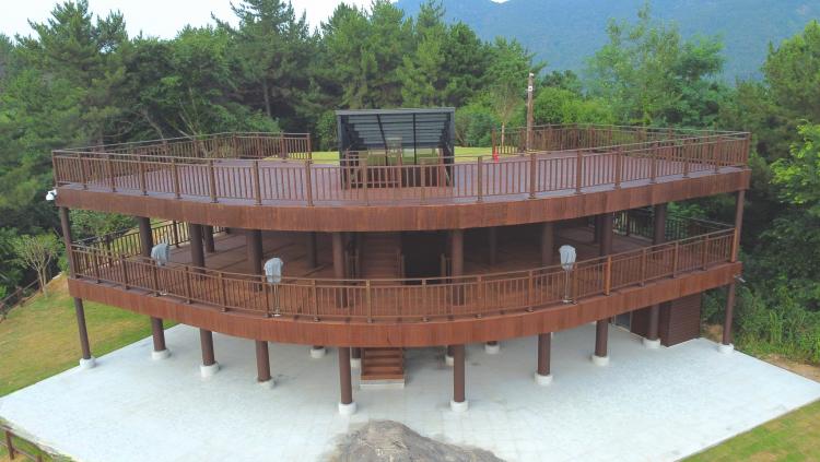 »õ·Ó°Ô °Ç¸³µÈ ¿ë»êÀü¸Á´ë´Â 124.88§³ÀÇ ºÎÁö¿¡ ÀÚ¿¬°æ°ü°ú Á¶È¸¦ ÀÌ·ç´Â 2Ãþ ¸ñÀç ±¸Á¶¹°·Î Áö¾îÁ³´Ù.