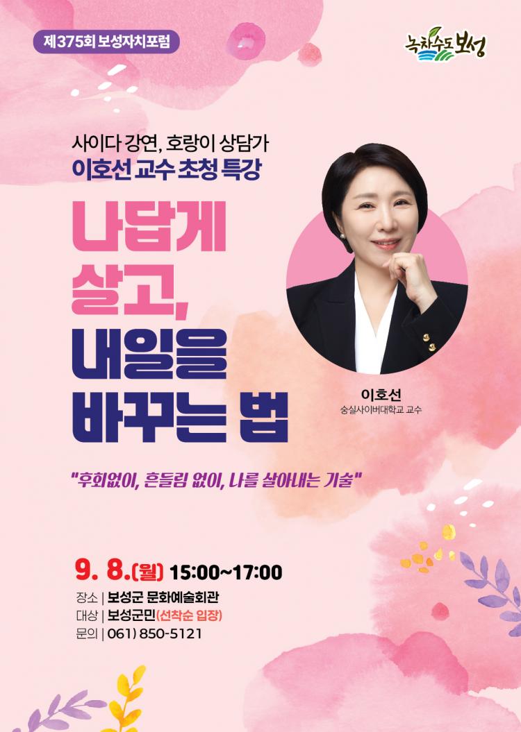À̹ø Æ÷·³Àº ¼±Âø¼ø ¹«·áÀÔÀåÀ¸·Î ÁøÇàµÇ¸ç, ÀÚ¼¼ÇÑ »çÇ×Àº º¸¼º±º Ãѹ«°ú(061-850-5121)·Î ¹®ÀÇÇÏ¸é µÈ´Ù.