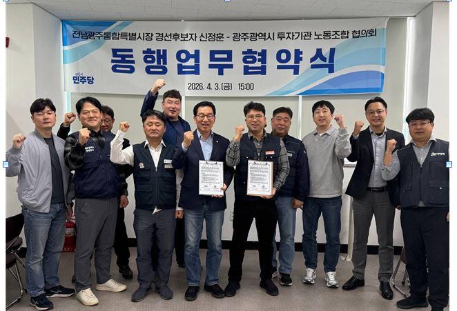 °øµ¿Ã¼ »çȸ¸¦ À¯ÁöÇÏ´Â µ¥ ¹Ýµå½Ã ÇÊ¿äÇÑ Á÷±ºÀÓ¿¡µµ Á¤´çÇÑ Ã³¿ì¸¦ ¹ÞÁö ¸øÇϰí ÀÖ´Â ½Ã¡¤µµ¹Î¿¡ ´ëÇÑ °ú°¨ÇÑ Áö¿øÃ¥ ¸¶·ÃÀº ½Å Èĺ¸ÀÇ ÇÙ½É °ø¾à Áß Çϳª´Ù. ÀÌ¾î ¿ÀÈÄ¿¡´Â ±¤ÁÖ±¤¿ª½Ã ÅõÀÚ±â°ü ³ëµ¿Á¶ÇÕÇùÀÇȸ¿Í ¾÷¹«Çù¾àÀ» ü°áÇÏ¸ç ³ëµ¿ Çö¾È ÇØ°á¿¡µµ ³ª¼¹´Ù.
