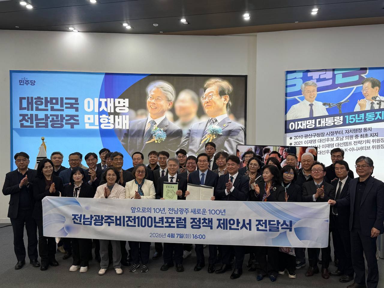 À̳¯ Àü´Þ»ç¸¦ ³¶µ¶ÇÑ ÁÖÁ¤¹Î °øµ¿ÁغñÀ§¿øÀåÀº "Àü³²±¤ÁÖºñÀü100³âÆ÷·³ÀÇ Á¤Ã¥ Á¦¾ÈÀº ƯÁ¤ È常¦ À§ÇÑ ¼±¾ðÀÌ ¾Æ´Ï¶ó, ÅëÇÕÆ¯º°½Ã°¡ ¹Ýµå½Ã Ç®¾î¾ß ÇÒ °úÁ¦¿¡ ´ëÇØ Çаè¿Í Àü¹®°¡ Áý´ÜÀÌ °øµ¿À¸·Î µµÃâÇÑ Á¤Ã¥ ÀÇÁ¦"¶ó¸ç "¹ÎÇü¹è È帰¡ ÀÌ Á¦¾ÈÀ» ¹Þ¾Æ ÅëÇÕÀÇ ³»¿ëÀ» ½Ã¹Î°ú ÇÔ²² ä¿ö°¡±æ ±â´ëÇÑ´Ù"°í °Á¶Çß´Ù.